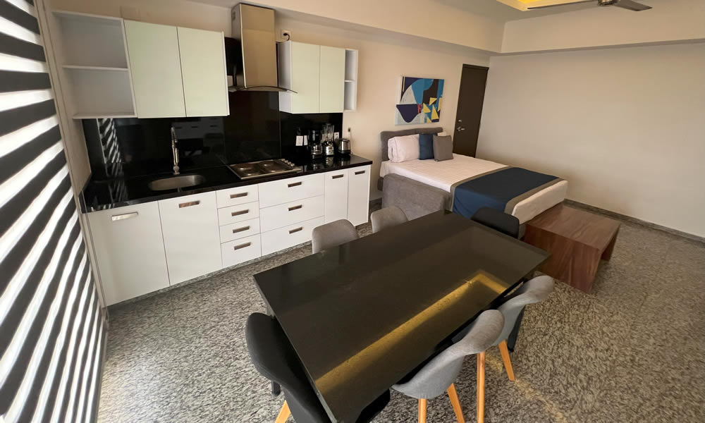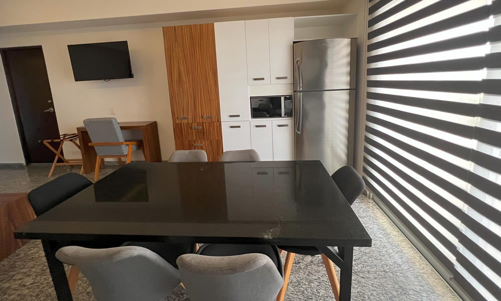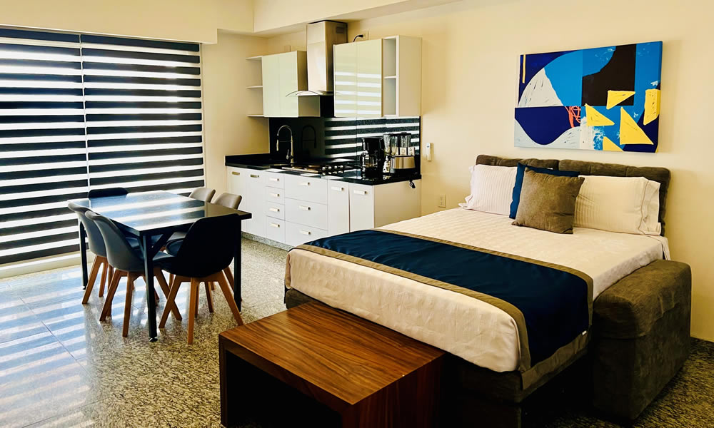 Perfecta para una estancia cómoda y funcional, esta mini suite ofrece una cama queen size, cocineta equipada, aire acondicionado, Wi-Fi gratuito y baño privado.