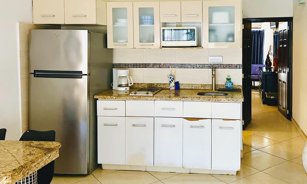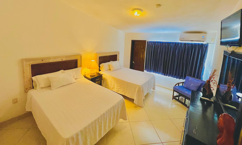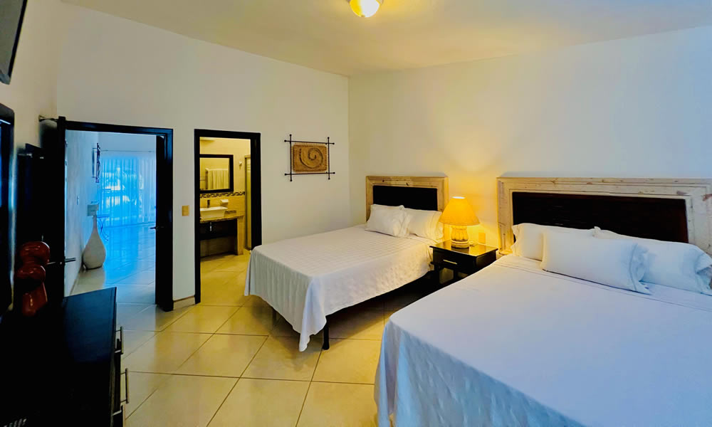 Perfecta para familias o grupos de hasta 4 personas que desean comodidad y funcionalidad durante su estancia. Esta suite cuenta con dos camas matrimoniales, cocineta equipada, baño privado, aire acondicionado y Wi-Fi gratuito.